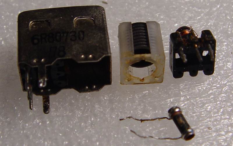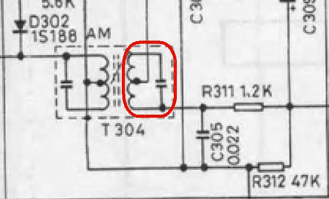 ok后,感觉灵敏度还行,弱台都能收到,就是AM整个通道增益不足。再结合物经一次中放的中波信号问题。其原因应该出在二次中放部分,信号发生器出460KHz,探到T304有二次调谐的中周前后尽有达30db的衰耗!改锥调整付边磁芯基本无效,判断应该是这元件问题。出吸锡泵拆下这器件。推出付边绕组,呵呵。。。。枚谐振电容只得54.8P。