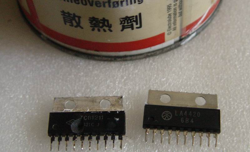赤裸散装机器就此凉放工作台面10来天,转悠回家再捡起。那LA4420早已到鹅多日,先将IC焊上,上电。居然还毫无声息!难道邮来的是坏IC?查,电源有加啊,中点怎还是无电压呢?再查,核对IC脚排列,啊!NND这IC竟是反装的。