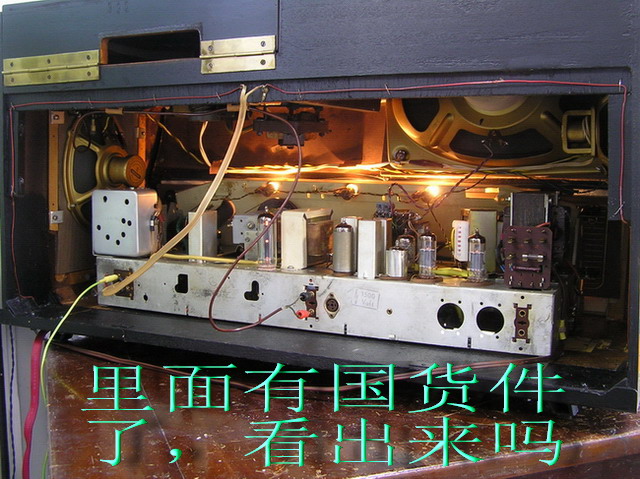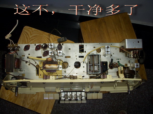 机芯很平常,用管是ECC85、ECH81、EBF89、EAA91、ECC83、功放管EL95用2个组成推挽输出、猫眼是EM35/35.自己又加装了一个EZ81作胆缓冲,用扼流圈替代了原来的滤波电阻,更换了所有已经失效的元件,特别是电容!德机的电容绝大部分是已经漏电的,这似乎是一个规律了,过程也就老一套,没什么可交待的,轻轻一带就过去了。