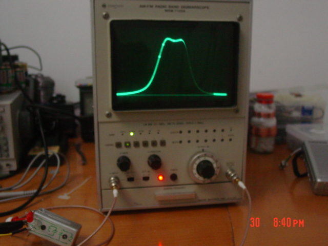 再说说LC谐振电路吧,我的想法是最好是做成像电子管机上用的那种大大个儿的那种,双谐振回路,Q值爆高,电子管和晶体管元件通吃。俺以前用312的中周改装了几只,在扫频仪上扫出了非常良好的曲线,呵呵,堪可用在高级收音机上。