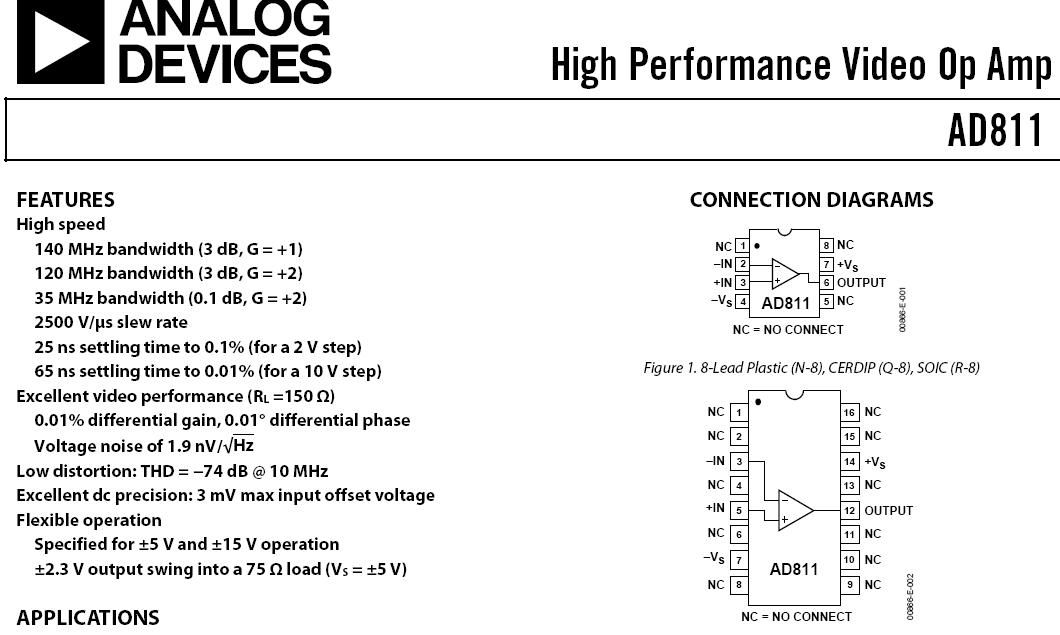 绝对值电路大家并不生疏,课本中也有介绍过它的电路。它的最大优点就是通过运放成功的解决了普通二极管存在死区电压的问题,我通过试验已经证明这种电路即使是在十个毫伏的信号电平下也能够实现良好的线性检波。但是这种电路对运放速度的要求极高。要想实现对465KHZ的中频信号检波,使用的运放的增益带宽积至少要到100M以上才能达到理想的效果。而普通的运放比如TL082,LF353之类在频率超过15KHZ时基本上就不行了。我在实验电路里用的是视频高速运放AD811,它在465KHZ的频率下实现完全线性检波勉强够格。