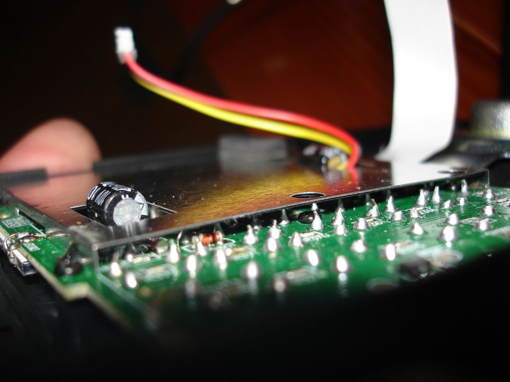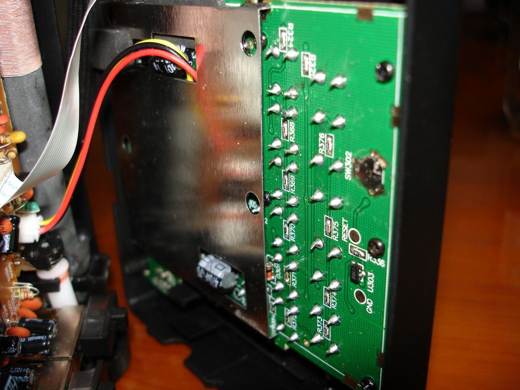 这就是主因!看下右侧壳内的小点点,分明是控制板元件引脚戳的,声音大时,引发机壳震动,元件引脚与机壳内部接触碰撞出破音!用手按下机壳时声音消失不就说明了这个问题!