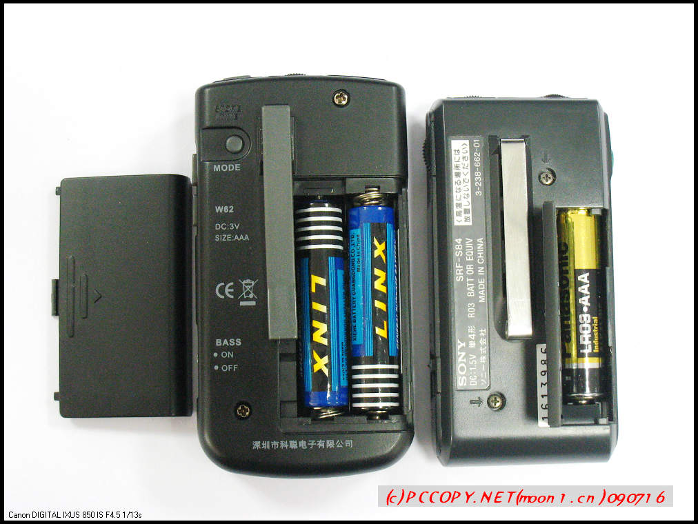 反面(S84只要一个AAA电池,体积也小点,最重要的是时尚些,我同事一说是7600GR与1103的比较,另一个说