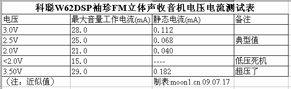 W62在2V时低电,单片机死机,耳机无声!(所以可以用二节充电电池(2.4-2.5V), 建议用爱老婆900mAh的,约可以用:900maH/25mA/2h=18天,而普通的碱性约可用12天,碳芯的更短,约6天左右。