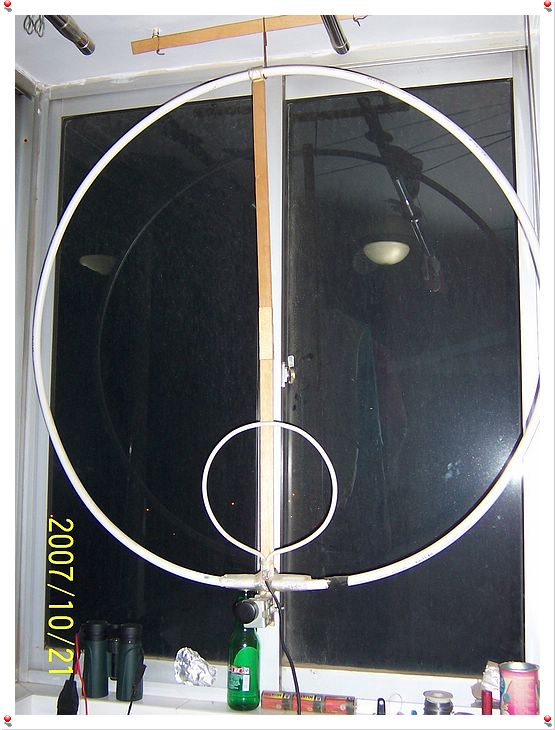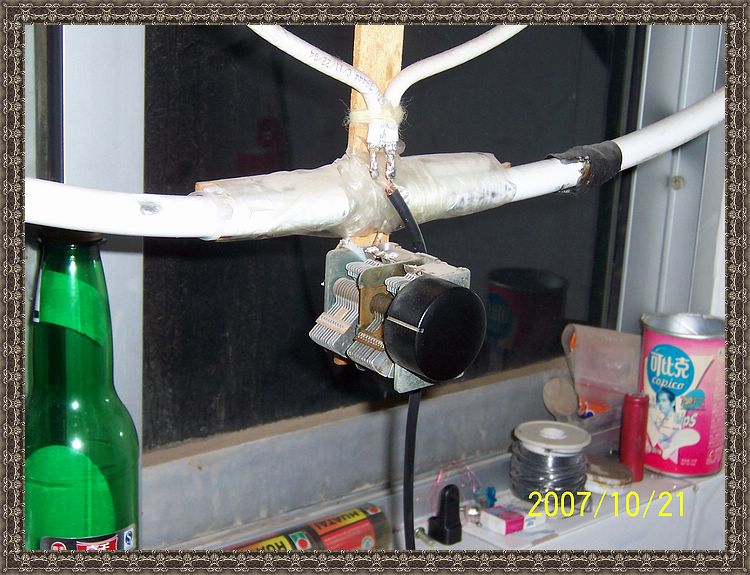 ◆我的做法:买3米的铝塑管,不用弯,它就是我们要的环形。中间穿了根带屏蔽层的电缆,将其外屏蔽层接到365P可变电容的两端。然后用2.5的铜丝弯个小环,两端接同轴电缆的芯线和屏蔽层,同轴线另一段直接接到接收机,俺的是R71E。实际上,估计可变电容接PVC的两端就可以,我没有办法将铝塑管的铝层和同轴线连接,才这样做的。