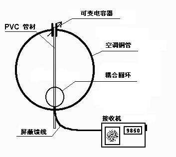 将粗铜丝也弯成一个圆圈,其开口处向下固定在固定在通过可变电容器的的直径的另一端。将两个开口分别接在带屏蔽的馈线的芯线和屏蔽层(此处连接完成后,要将接口进行屏蔽处理),将屏蔽馈线和接收机天线插头进行相连,接入接收机即可。该天线无须调试,即插即用。馈线越短越好。