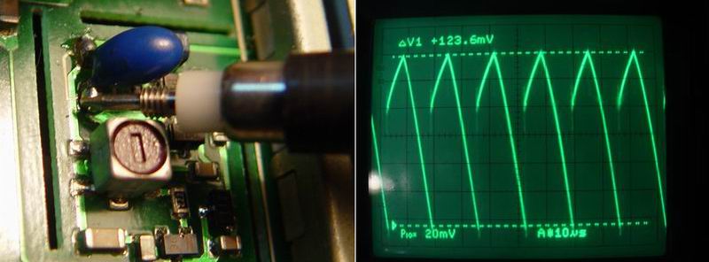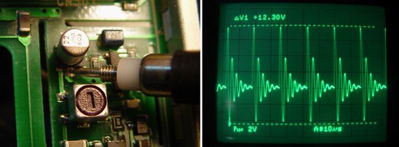 打开5-12V升压屏蔽盒,在接回电路状态摸升压转换Q702管子没丁点热度。第六感觉应该不属电流过载问题,分析电路用示波器探Q702管子C极,锯齿波P-P高达12.3V!