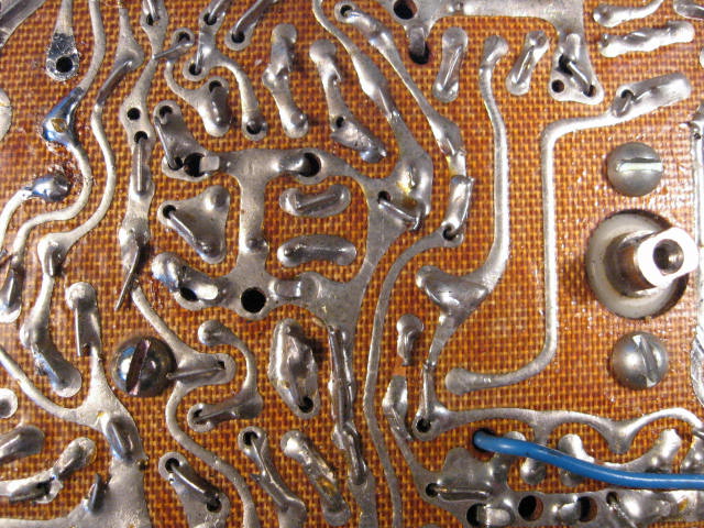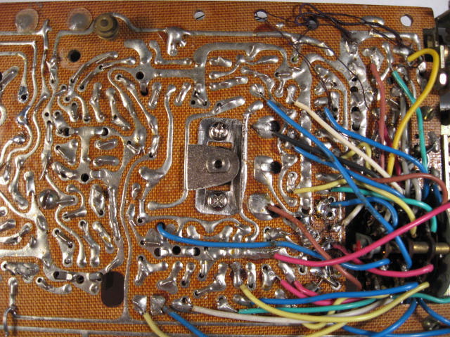 今天睡了个懒觉,11点才起床,第一时间开这机器,怎频漂这么厉害?开机2-3分钟才频率稳定下来?信号往高端走,即振荡频率一路上升。又卸下底板查振荡电路,回想到这机那被焊错的高放管问题,直接先焊下这振荡管3AG24,嗨!比那高放管的穿透电流还大!换上漂亮指标的3AG28四脚的管子,这现象解决。就是不顺,在多次拧动新换上的音量电位器时,在某一个角度会没声音,怀疑是这电位器炭膜滑板接触质量问题,仔细检查竟然是这电位器中轴的一介子稍稍大了一点点,碰到电位器附带的电源开关端子,将音频信号全短路掉了,查电路这电位器前后都有电容隔离着这负6V电压,要不然还不知会要损坏那里呢。将电源开关端子稍稍往外扳了一下问题解决。下午一直开机听一台湾电台到现在,声音甜美极了。下午特兴奋的还将这多年没油气的安全套偷偷给上了下我LP皮鞋所用的上海高级棕色靴油,油光闪闪,漂亮多了。但搞的我手上现在还棕迹斑斑。发帖告知
