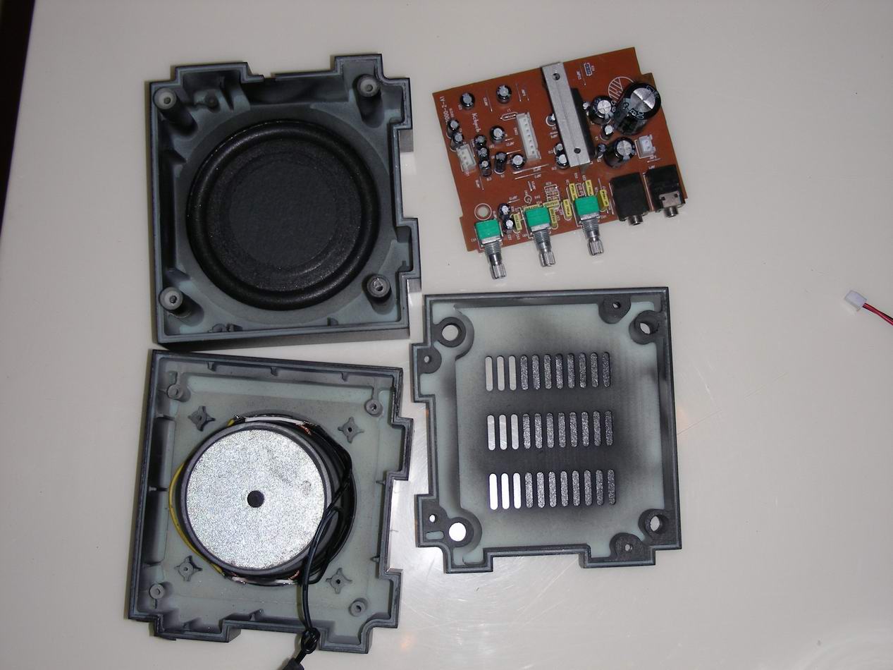 在以上的过程中,箱体的大结构,做了两种,小结构改了十几次;功放的基本电路做了5种,细节修改、调整做了几十次,其PCB布板就做了6款。功放IC选用过:TDA2822(16脚)、SJ2038、BA5415a、HA1392、TDA7056B这5款;喇叭试用了4寸、3.5寸、3寸、2.75寸、2.5寸、2.25寸、2寸等几十种不同尺寸、不同性能规格的,最终选用是3寸+1寸的。在经过两个多月的时间和许多次的试验,换了许多种结构、喇叭、材料、功放、元器件以及反复调整之后,基本获得了所期望的效果。