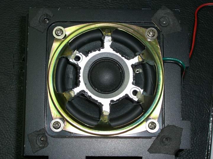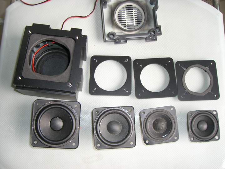 为了获得最佳效果,设计了适用多种箱体结构和喇叭的结构,从2寸到4寸。图中这个箱体结构原是一个二阶被动辐射器结构设计,上部那个后盖还安装有一个2.5寸被动辐射器(图中还没有安装,该结构试验后没有采用)。