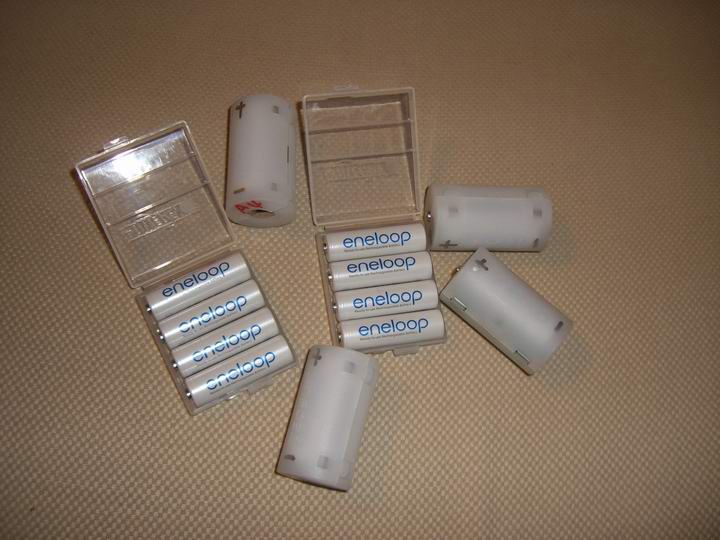 采用镍氢充电电池是一个不错的选择,内阻低、放电电流大。采用S2000原配5号转1号的电池转换器,放在3V档,8节电池串联最高电压9.6V(此时音质非常好)。