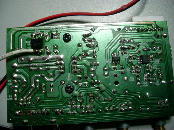 改造后的音调电路板背面图(俩只淡绿色电容是后增加的)