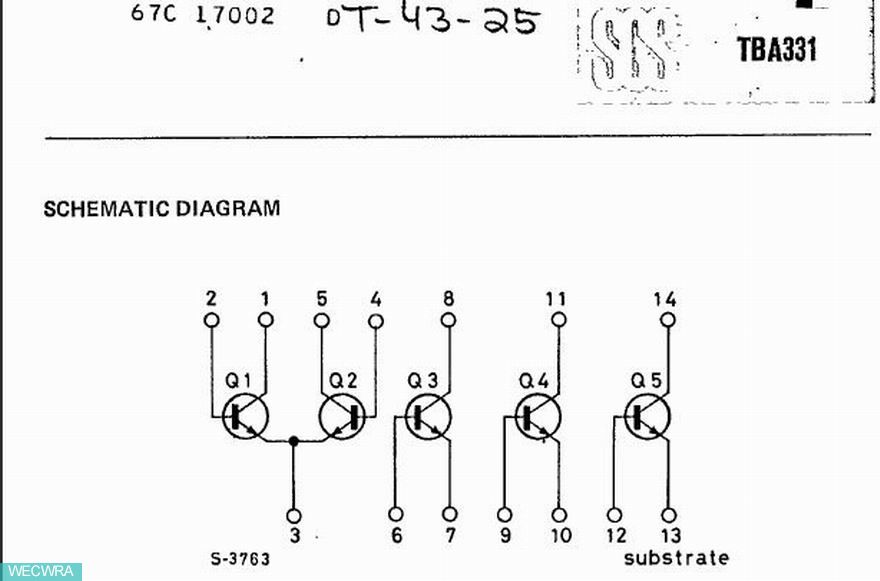 哇!竟然能得到完整资料!查看后,也就知道了这稳压IC其实才封装了5枚3极管。有了资料将IC301(TBA331)各引脚作了检查,知道是Q2的bc级开路。