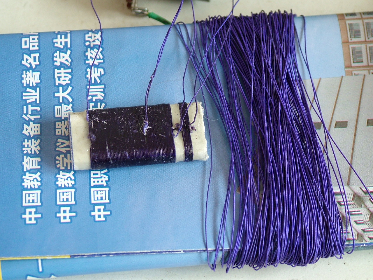 用纱包线绕制天线线圈,找不到牛皮纸线圈骨架是用一次性水杯作的.