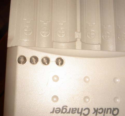 还有一个发现: BQ-395,如果放入的四个电池至少有一个坏了,原机绿灯会熄灭,但其余电池继续充电。 想了半天,原来设计目的是什么呢?只有一个灯