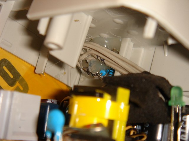 里面很拥挤,料想用小贴片元件,细漆包线来做,安装起来会更合适。现在这样必须考虑电源一次侧的绝缘,弄不好会出事故。
