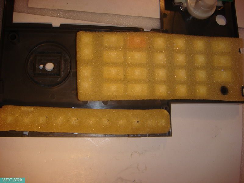 按键用了一块海绵盖上,每个按纽用胶固定,这个不错,不会一不小心就全部按纽跑出来造反。