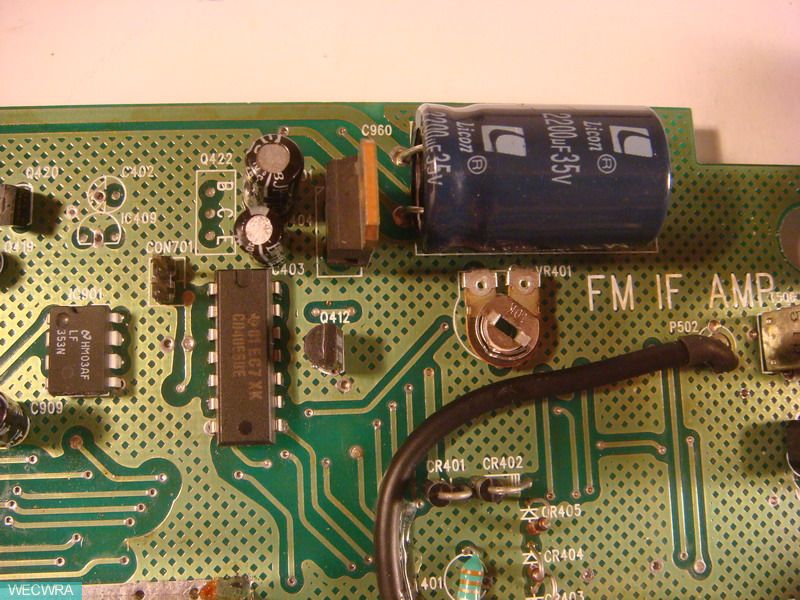 AM、FM的场强信号放大由这个运放负责,2个VR分别调AM、FM的场强指示,用示波器跟踪到这里,清楚,原来是调过头了,搞定。