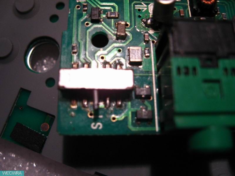 再将天线信号输入方式折断的开关小凸端打孔,插上段钢线全机装回ok!