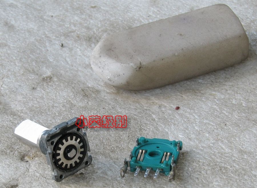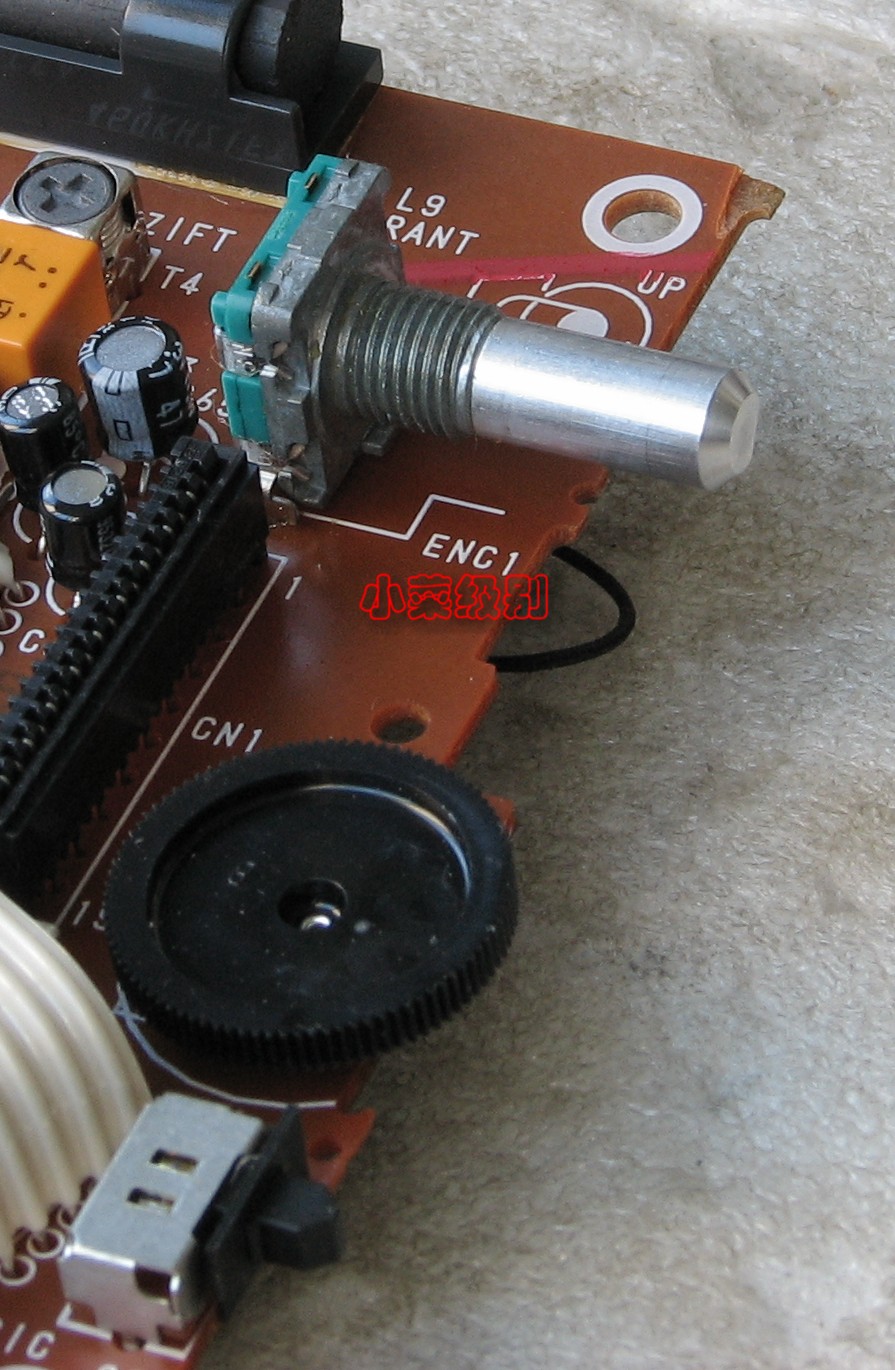 这就是该机的飞梭和音量调节钮。音量钮的旋钮是铆装上去的。维护它需要拆下来的。