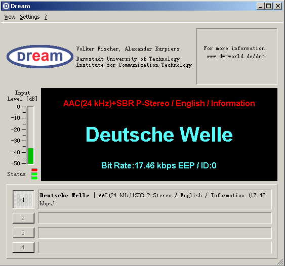 因为信号发射目标区为欧洲,所以我接收到的只是泄漏到华南地区的信号,因此还无法收到音频,但是台标等信息还是可以识别。