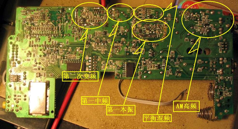 虽然才疏学浅,但自幼好奇心特强,一边看线路时还一边把手里的DE1103收音机拆开对照,企图去尽量地弄明白这东西,因此就有了一些对1103更深入点的理解(理解未必正确!)和想法,同时顺手拍摄了一些照片,以证明我昨夜通宵确实是在“玩”1103,没有做别的事情!