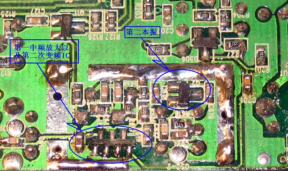 这在DE1103线路板上也很有意思,线路板上把平衡混频的两个场效应管分布到两面上...