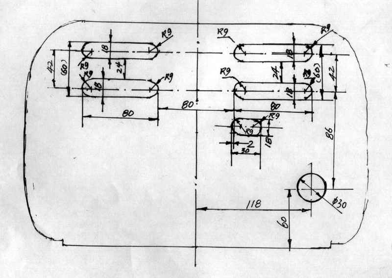 余下的工作就好办了,喇叭布先不管它,DIY一个后盖板再说,我向fjzxx前辈发了个信息要个后盖照片,没有想到张前辈的照相机坏,他竟然用描述仪给我把后盖扫了发来,怕我不明白,又用手绘了具尺寸,张前辈这种热心助人精神和严谨的态度真令我们做晚辈的感动万分,下面是张前辈给我发来的后盖资料。