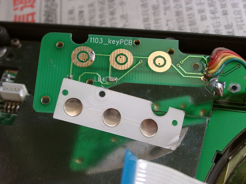 1)把1103_keyPCB板拆出来,把白色的触片贴膜给撕掉