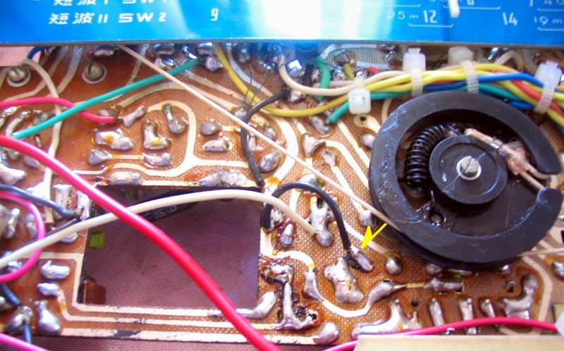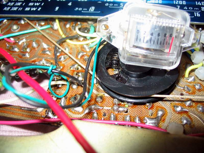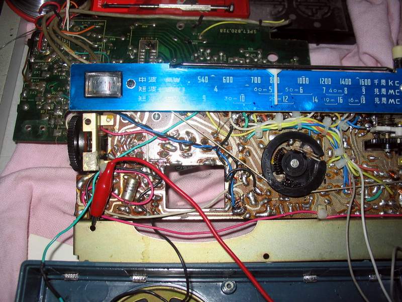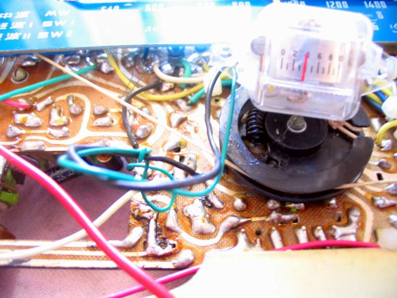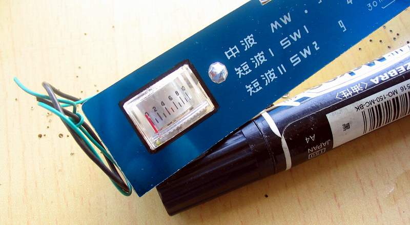 再调节收音机调谐旋钮,试收听电台,这时,发现调谐指示不“灵敏”,短波收听到一个信号较强的电台,表向左边偏移甚少,信号弱些的电台基本没有反应!