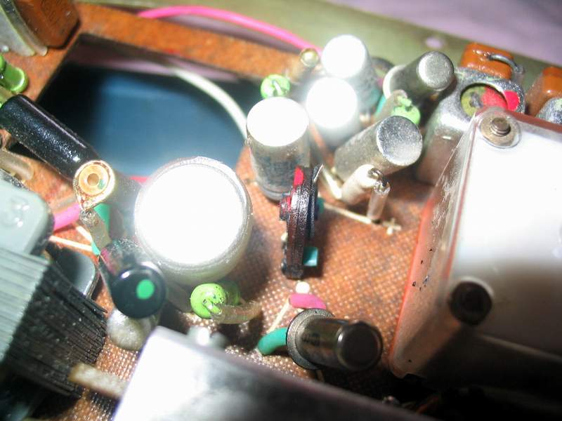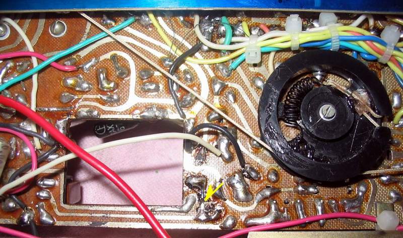 线路板上,离刚才接入电平表不远的位置上正好有一个用来测量1中放集电极偏流的断口,焊开!正好用来接入电平表。