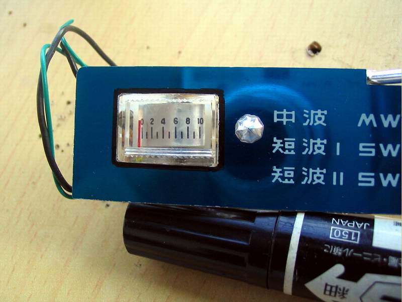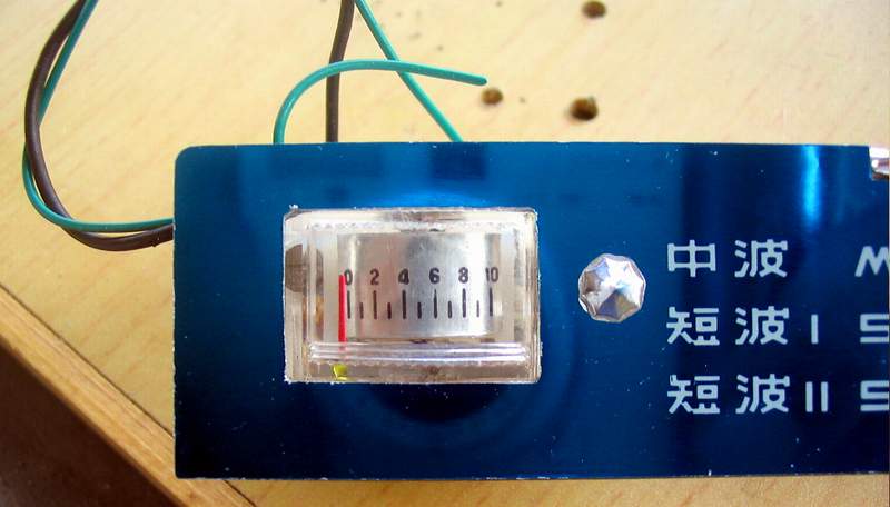 前天,先清理、修理好一个B-802-1,虽然收音机的模样已经不是很好看了,但试听了两天,感觉收音机性能很在状态,灵敏度非常好!于是,今天下午决定把这个表头安装到这台B-802-1上去。