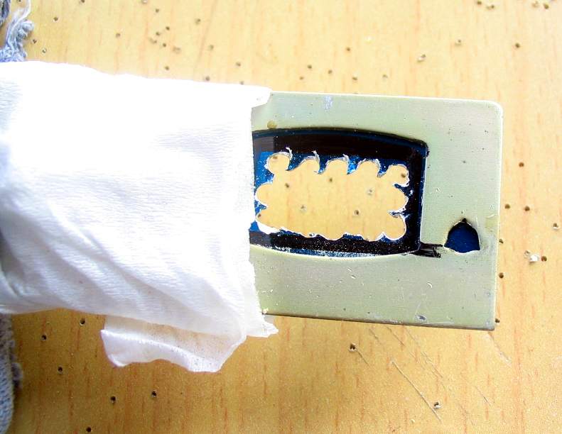 接着用锉刀锉平、修整出一个合适的安装窗来...