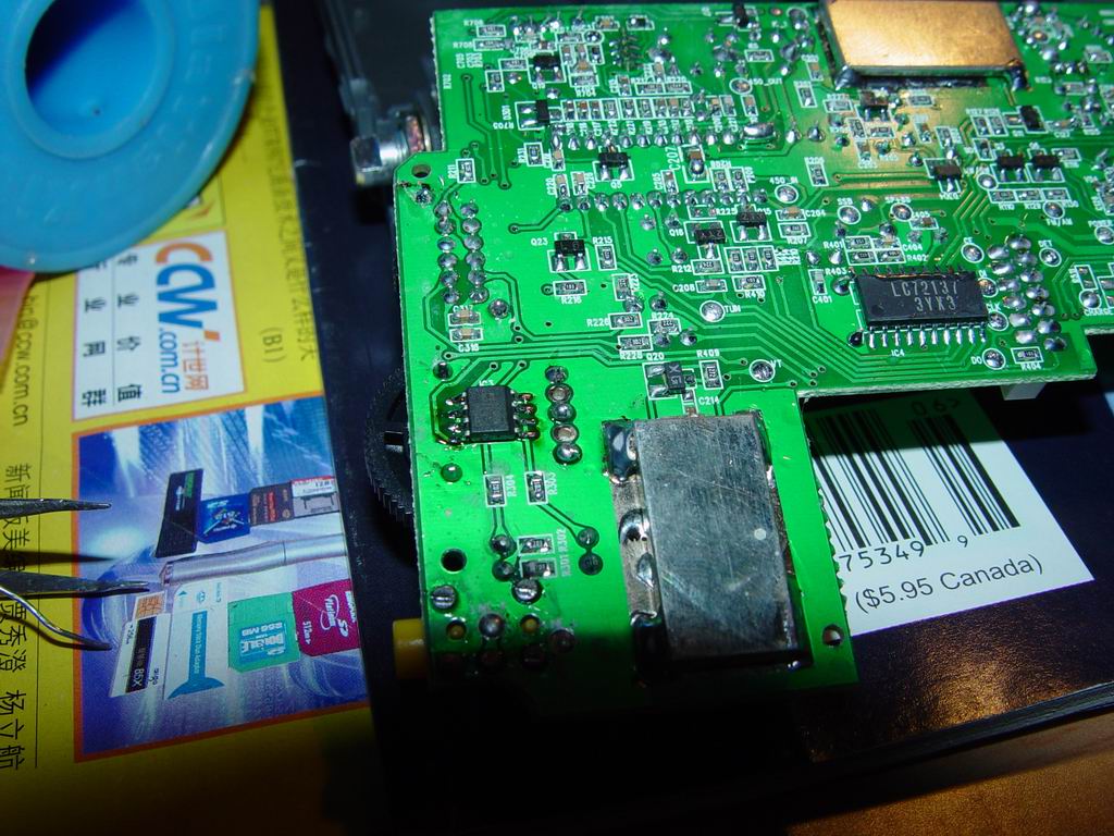 翻过身来,那个小小的芯片是臭名鼎鼎的LMV358,根据报道,将其换成OP284。这部分好像跟line out效果相关。