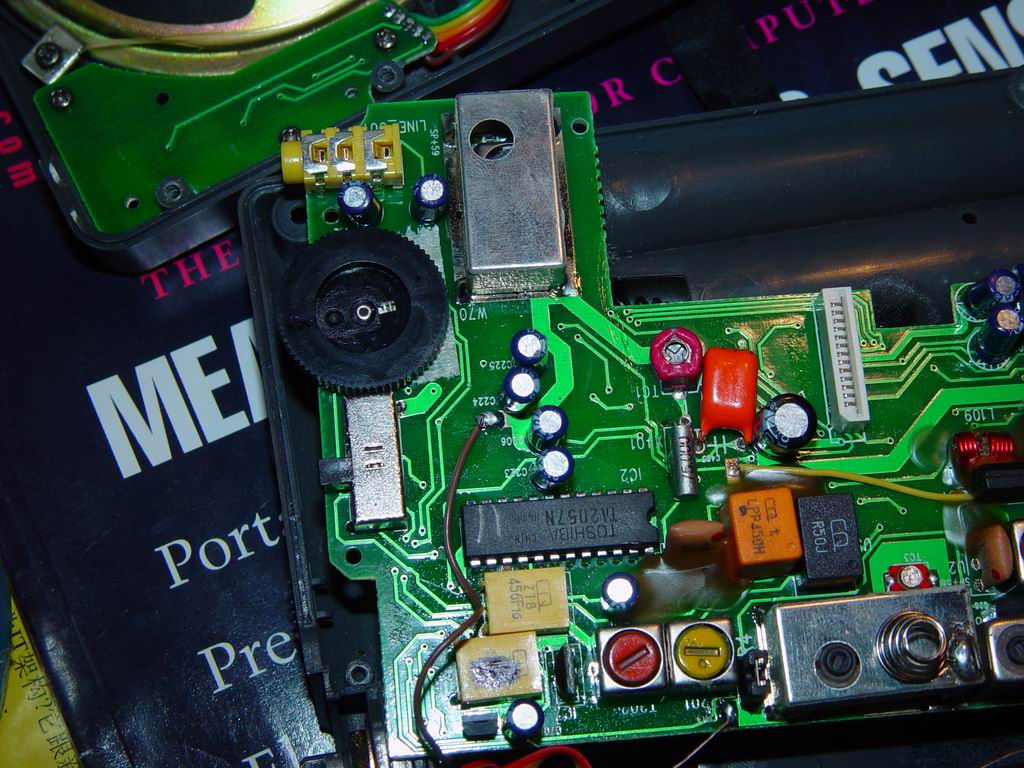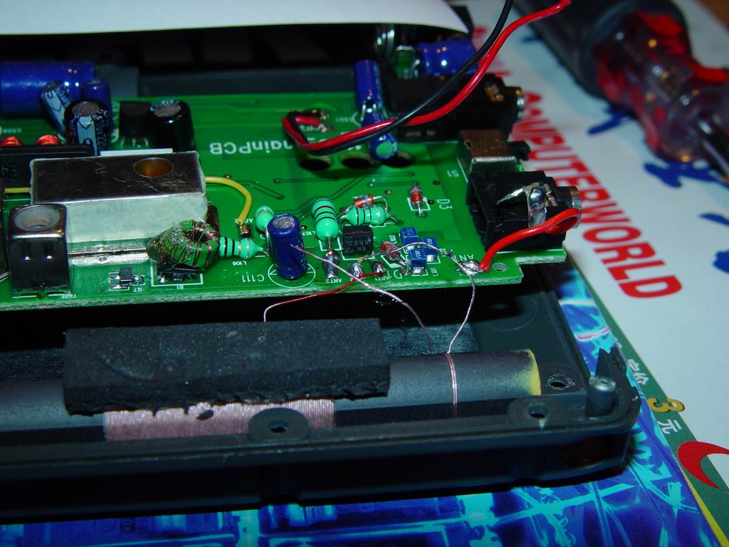 拆开机器,发现1103的焊接工艺实在是不敢恭维。板子后面很多焊点黑糊糊的,我都怀疑是返修的机机。而且中波磁棒天线的线圈焊点几乎全是虚汗,估计MM们以为沙包线里面是裸铜,懒得仔细上锡。看看这个断头:
