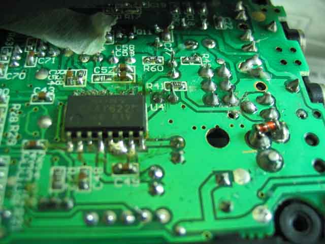 摩机时候发现一段小插曲,发现电容C100不见了,开始以为是我弄掉,但翻查我拆机过程我没有动过这地方,真奇怪!但原来是有焊过痕迹,少了好像对性能没有什么影响!