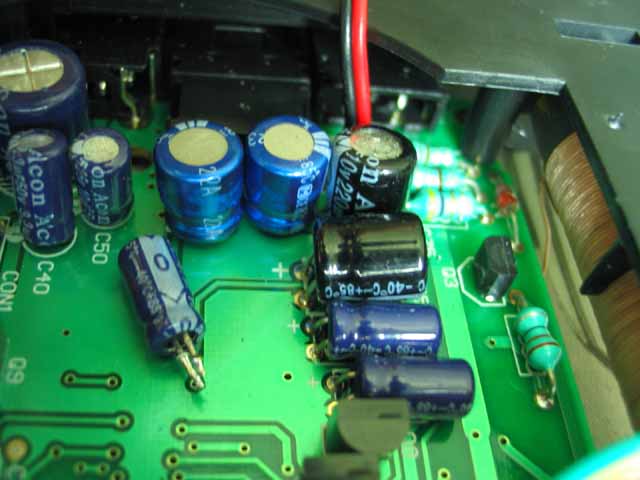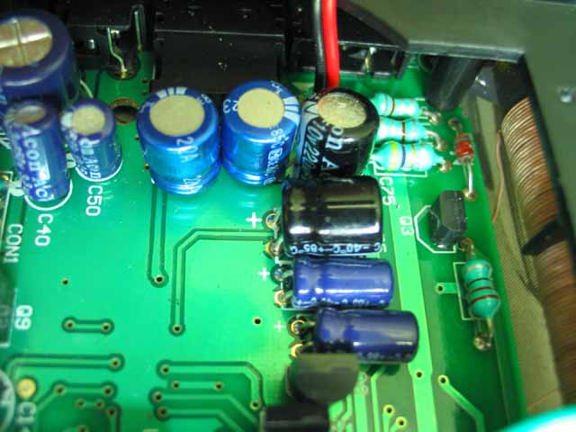 把原来输出偶合电容47U换上100U补品电容,颜色就是不一样!