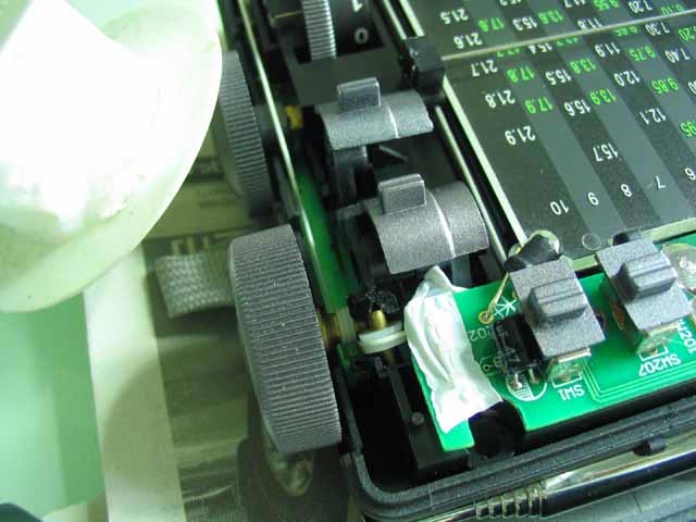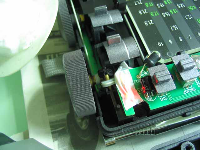 还有1107三个指示灯如果一齐亮起来在夜晚也是比较刺眼的,坛子里有DX也提过这问题,本人也觉得,所以一不做二不休,把心一横也将它搞定。在工具箱里面无意中发现有一卷用来修理水龙头的胶布,乳白色,很薄透光,嘿嘿!刚好要找这样材料!剪出一小段盖上。。终于冥目了!