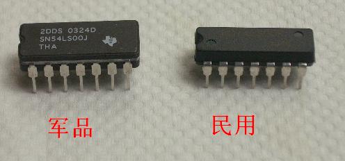 将此故障向坛中大侠阿里巴巴请教,他的正常机器R55两端电压应该为0,因此建议对相关的IC进行代换处理,查相关电路此部分只涉及U4和U14,U4为特殊存储器不容易买到,只能重点检查U14了,到中关村买来54LS00J,才知道军品的和民品不是一回事, 光价格军品就是民品的9倍,可想当初军机的造价动则上万元是有道理的,请看军品54LS00J(9元/只)和民品74LS00(1元/只)。