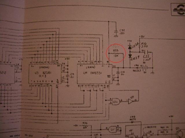 机器购来时发现不能存储频率,直接查原因是原装锂电池已经失效(电压只的0.5V),随即找到一只原照相机用完电的锂电池CR123A换上机器。起初觉得问题算是圆满解决,没想到5天后这个电池也同样很快失效。按保存COMS用电池的使用经验,一个这样的电池也应该至少能使用一年以上,这样迅速的放电肯定是电路的耗电不正常。关机后测量锂电池的静态电流已达到1.3mA,这样的耗电当然是用不了几天的。经过检查存储芯片U4 6551 的管脚发现有不明液迹存在,用纸清洁后,再测试锂电池静态电流下降为0.16mA。原想这回该是没有问题了吧。重新买来一个全新CR123A电池换上,留心测量了电池端电压为3.27V,24小时后再测端电压已降到3.08V。这样的电压下降速度引起本人的高度重视,仔细推算这样一个锂电池正常机器应该能使用20年以上,如果按上述耗电电流计算电池容量要达到28032mAh(2436520*0.16),显然这种电池是达不到这个容量的。要达到使用20年的目的至少耗电应该再下降10倍。经查机器关机后对锂电池耗电的只有存储芯片U4,重点检查其隔离二极管CR6之后的电路,发现在U4的22脚到18脚间接有一个10k电阻R55,其上电压有1.6V电流就达0.16mA,可见主要耗电在此电阻,按降低10倍耗电计算将10k电阻更换为100k。再测锂电池静态耗电已降到0.013mA,三天后锂电池端电压居然回升到3.11V。看来这回单个锂电维持20年的计划是可以实现了,不过这机器的其它电路是否同样能保持20年还能用可就难说了。