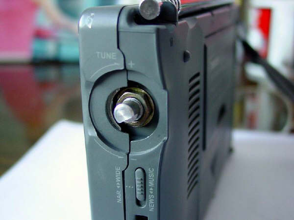 3.打开机壳后盖,用尖嘴钳子拧下飞梭的固定螺丝。