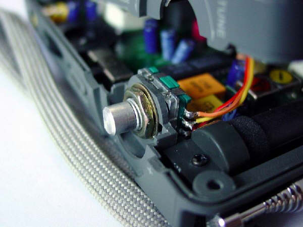 9.最关键的一步是焊接连线,我按原来三根线的连接次序焊上后,发现调谐方相反了,把“红”、“橙”两根线对调一下,焊上即可,这回方向就对了。记住三根线的次序:你面对飞梭后盖时,三根线的排列次序由左至右应为“橙、黄、红”(原来是“红、黄、橙”)。上面第七步骤图中旧飞梭使原来的连接次序。