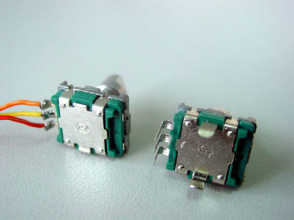 7. 这是旧飞梭和新飞梭的合影。左边那个是旧的。把旧飞梭的连线用电烙铁烫下来。烙铁越小越好,大烙铁有点“高射炮打蚊子”,不合适,而且容易伤了飞梭。