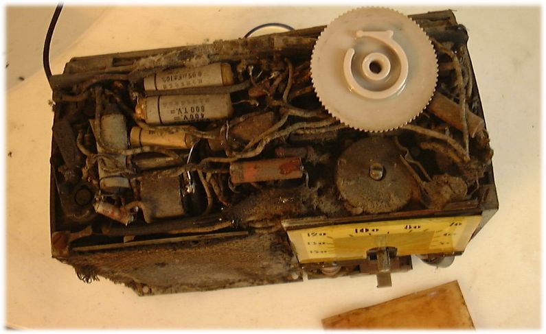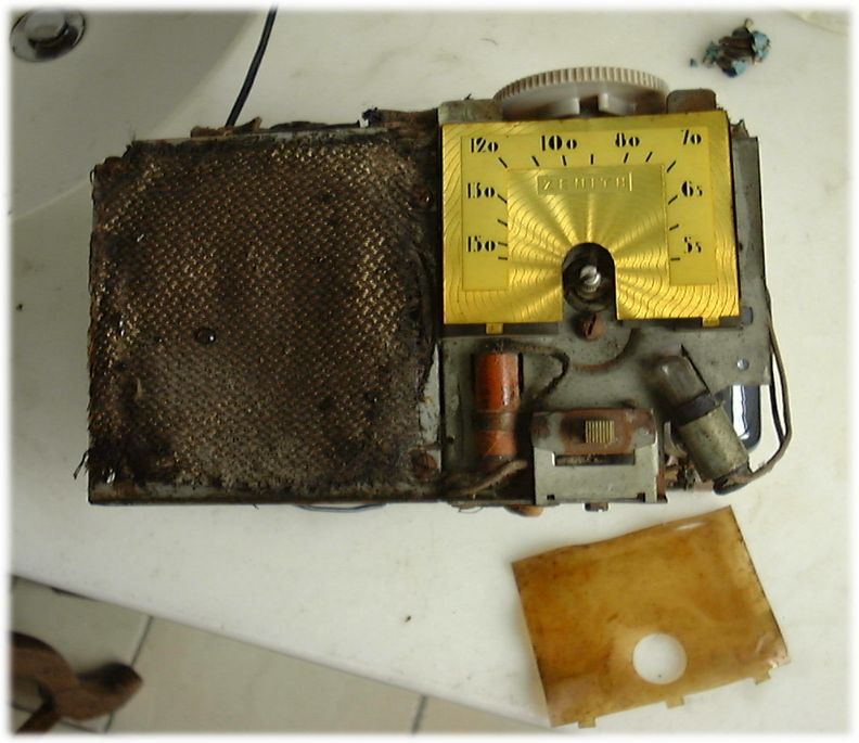 奇怪的是此机前后都是一个整体胶木壳,点水不漏.原来要从底部才能看到机机的芯子,且所有的6个管子都是倒置的.