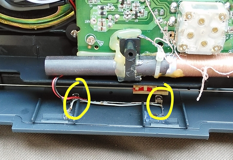 电路上从这里取照明电源,功能开关打到MP3时刻度盘照明不亮,打到收音时才亮。