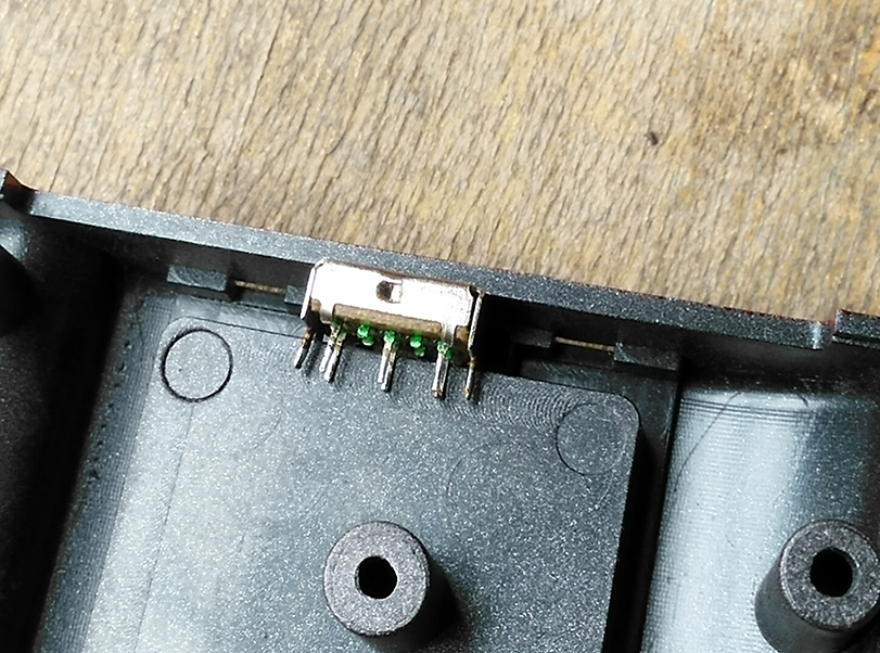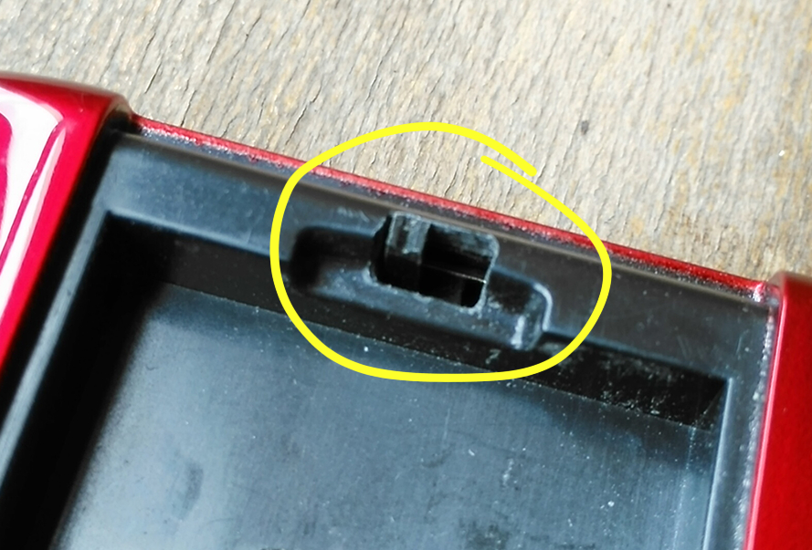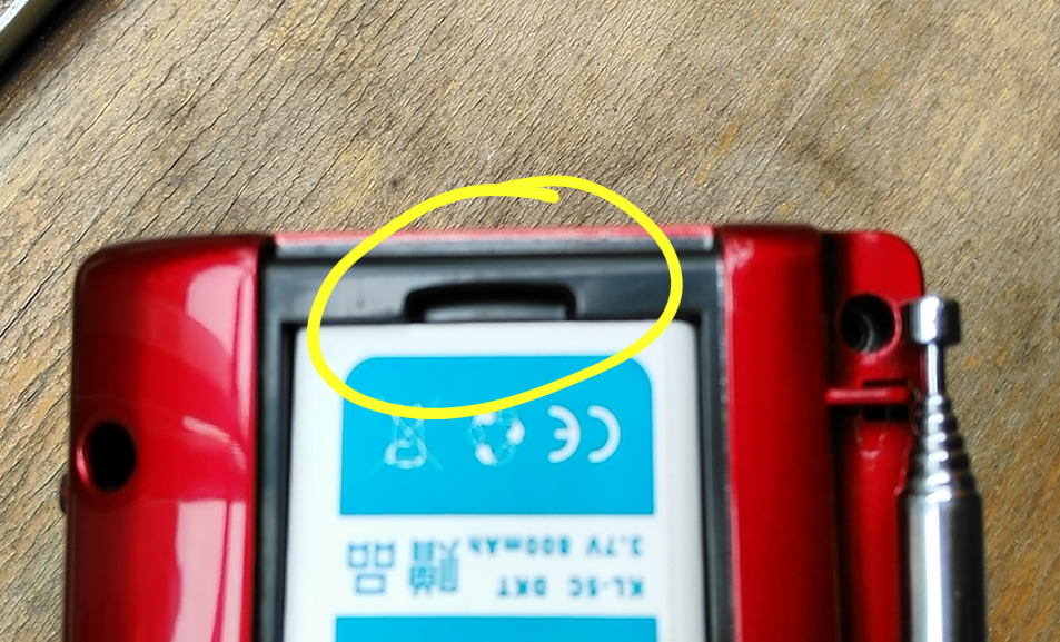 一个一个按键琢磨,看能否有可以利用来兼做蓝牙开关的,无果。再把机器翻来覆去查看,发现电池仓里有个为方便抠取电池的小槽,内部空间也正好能容纳下准备好的开关,有办法了,于是动手加装。