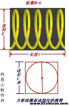 我们的边长1米的方框型线圈,可以近似当成直径1米的圆筒形线圈来计算,如下图所示: