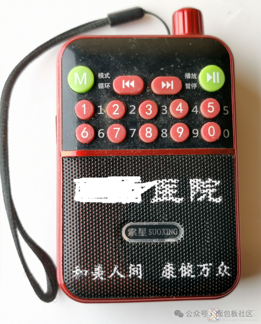 本次拆解的是一台便携式多媒体收音机,由某医院用于保健品宣传及自身形象推广。这类设备常以“保健关爱活动”“健康讲座礼品”或“孝心工程”等名义免费发放给老年人,也有以几十元低价出售——远低于市场同类产品的正常成本,因此最初推测其做工粗糙、用料低廉。