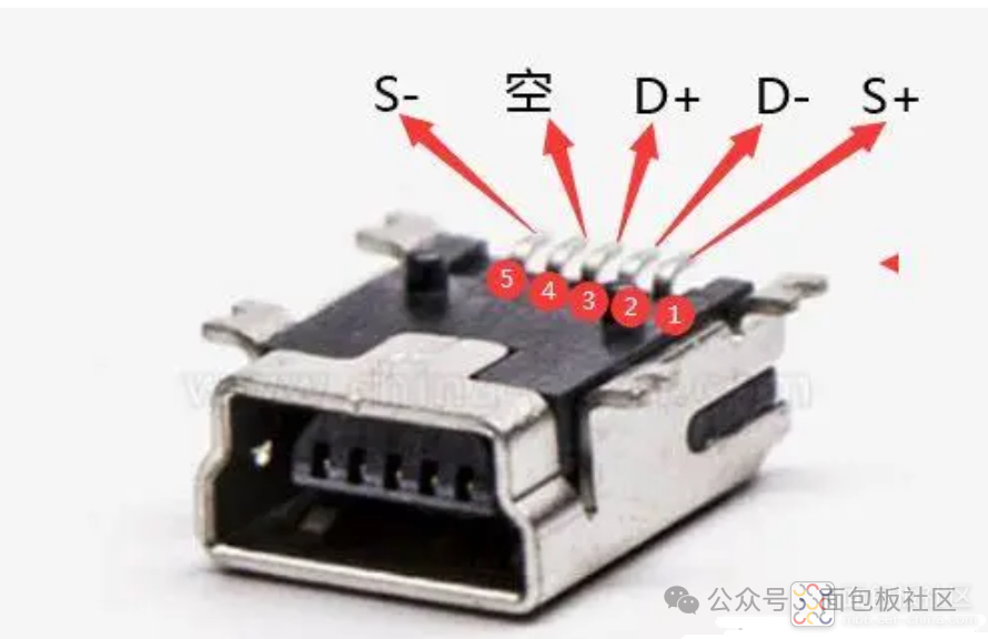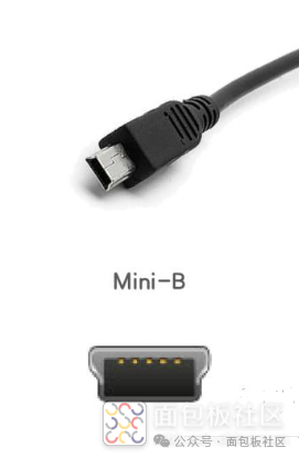 USB Type-B 常见于老式功能机上,因为仅有5金属触点,只支持USB2.0(Mini B)