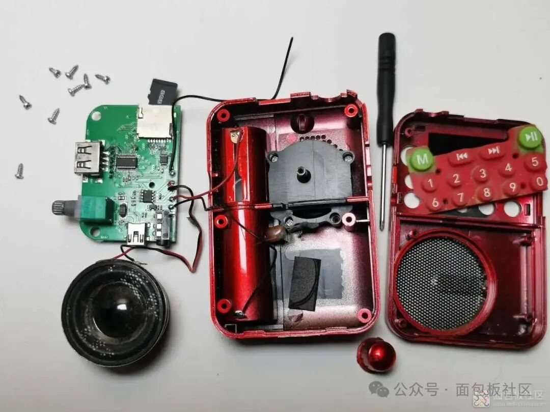 今天拆解的是一台老人准备扔掉的多媒体收音机。他说这是参加活动时送的,但一开机就是大段广告,能听的电台只有几个,还杂音严重;反倒是内置的医院广告特别清晰,实在没法用。